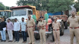 पंढरपूर तालुका पोलिसांनी १ जेसीबी, हायवा ट्रक, ३ ट्रॅक्टर, १५ ब्रास वाळू सह ६ आरोपींना घेतले ताब्यात